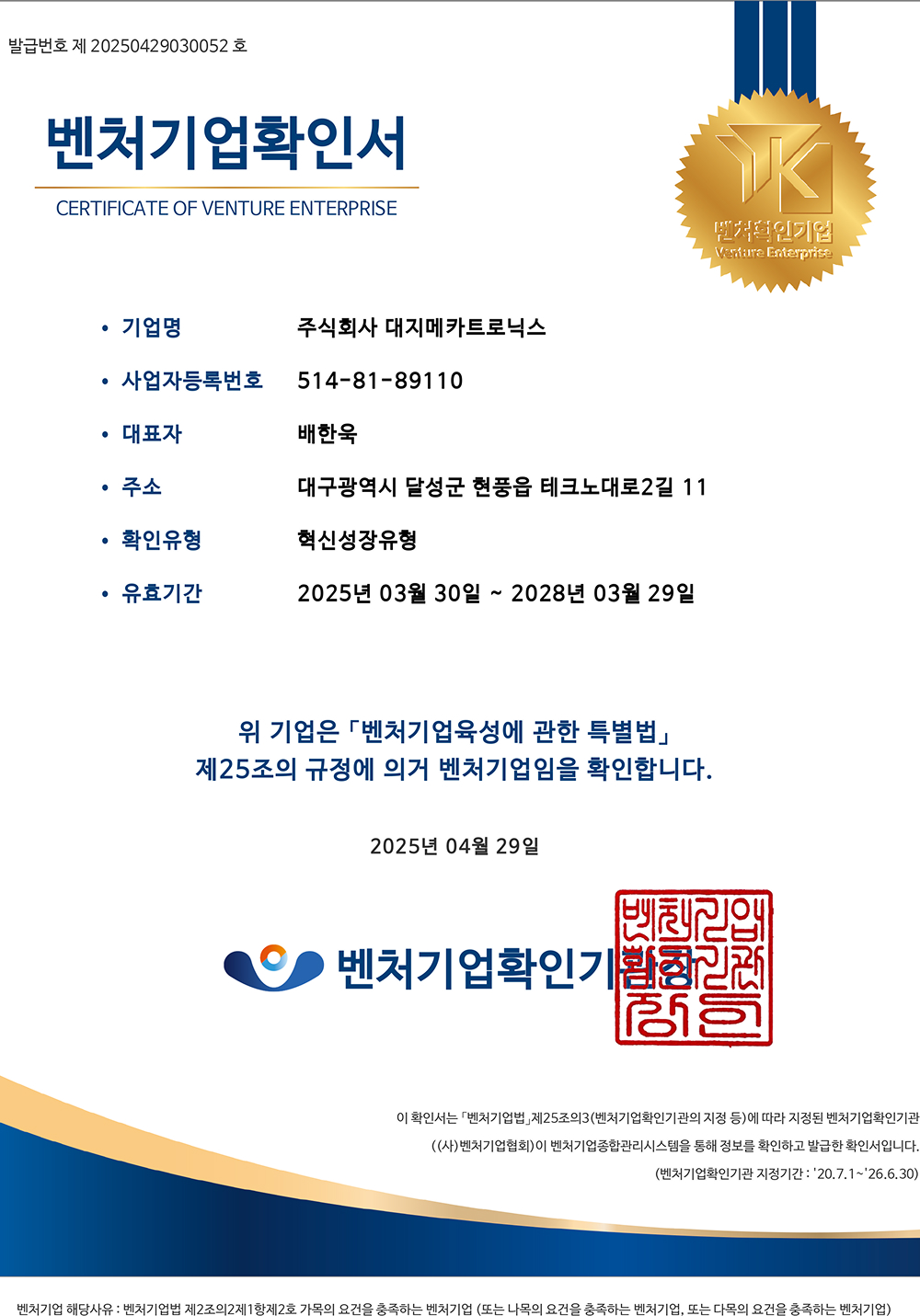 벤처기업인증서