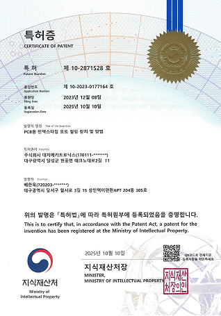 피시피용 분리코어 박리장치 특허증
